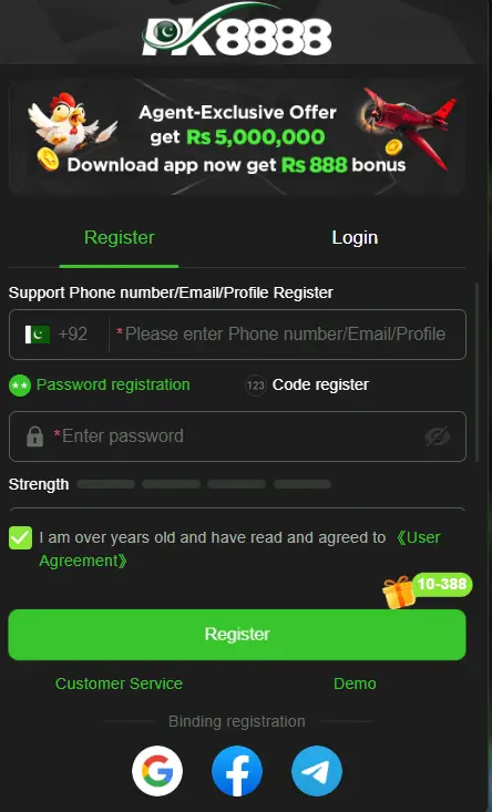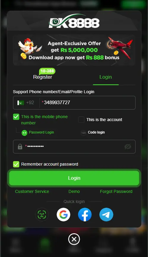 A fast login process, a secure environment, and instant access to all features make PK8888 Pakistan’s number one gaming app. Log in to your account and continue your winning streak today. Real cash prizes and daily rewards are just a click away!